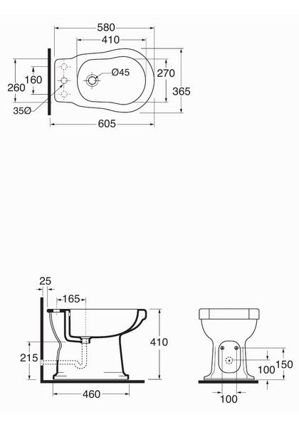 арт. GIU500B1/T - Биде приставное с 3 отверстиями под смеситель - 19148 руб.