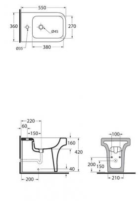 Варианты исполнения арт. TUVI500B1/M Биде приставное с 1 отверстием под смеситель с декором Vienna; цвет - белый: