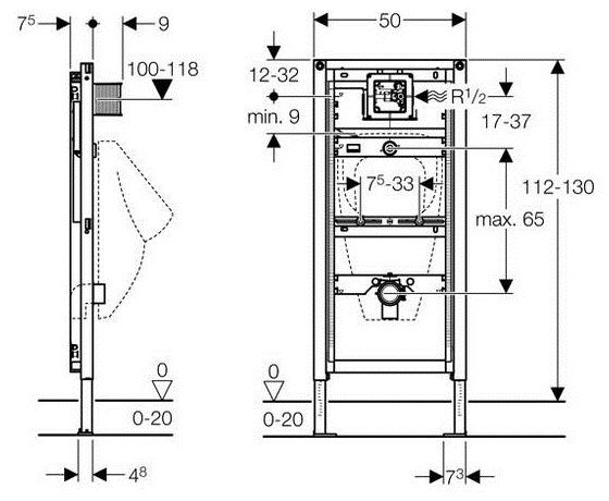 *Возможно дополнительное крепление для керамического писсуара с принадлежностями