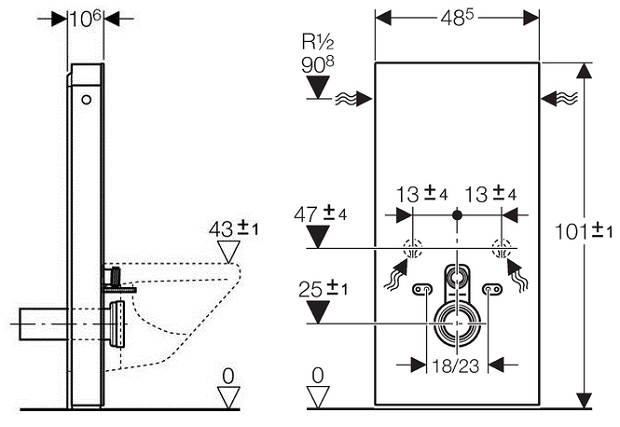 *Для унитазов с межосевым расстоянием под крепежные шпильки 18 см или 23 см