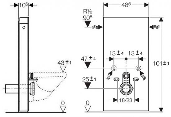 *Монтажный элемент со смывным бачком с обшивкой с передней и боковых сторон