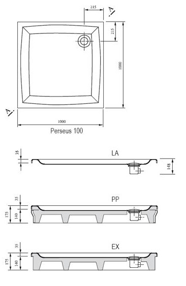 LA - душевой поддон низкий армированный ламинатом, предназначеный для установки в пол или на опорную конструкцию