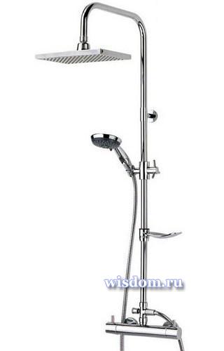 Коллекция Elle&Lui , душевой комплекс Key West *Артикул: 518900 000 00 *Верхний «тропический» душ D 250 mm. (ABS) с функцией подсветки по всей площади *Ручной душ с 2-х позиционной массажной лейкой с функцией «stop», регулируемый по высоте и наклону. Гибкий шланг 1,75 м. *Душевая штанга из нержавеющей стали с закрепляющейся мыльницей *Адаптированный термостатический смеситель *Пристенный вариант установки