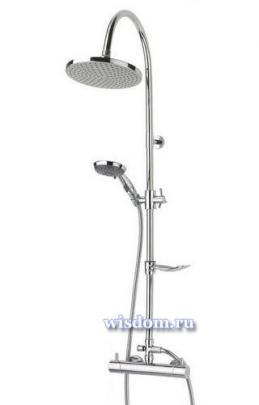 Коллекция Elle&Lui , душевой комплекс Key Largo *Артикул: 518400 000 00 *Верхний «тропический» душ D 220 mm. (ABS) *Ручной душ с 2-х позиционной массажной лейкой с функцией «stop», регулируемый по высоте и наклону. Гибкий шланг 1,75 м. *Душевая штанга из нержавеющей стали с закрепляющейся мыльницей *Адаптированный термостатический смеситель *Пристенный вариант установки
