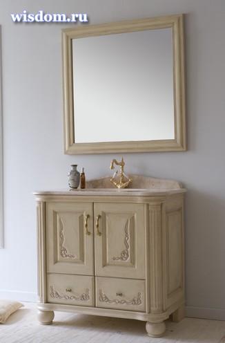 Тумба комплектуется столешницей из натурального мрамора, фаянсовой раковиной Roca Foro или Gustavsberg 6147-98.