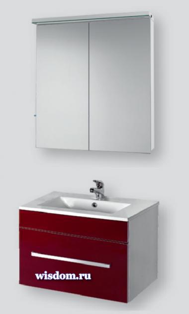 Тумба Астон S 75 с керамической раковиной Слим, красный |