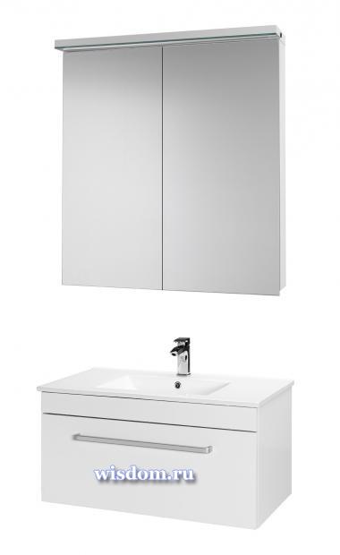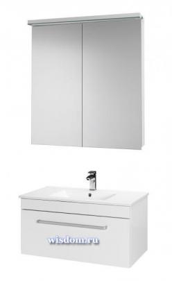 Шкаф с зеркалом и подсветкой Астон S 90, белый |