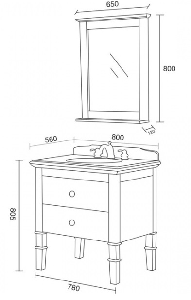 *Зеркало: МДФ, зеркальное полотно с влагостойким покрытием