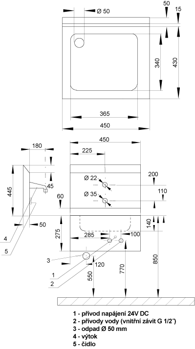 *Мойка из нержавейки с задней стенкой и с интегрированной электроникой предназначена для монтажа на стену