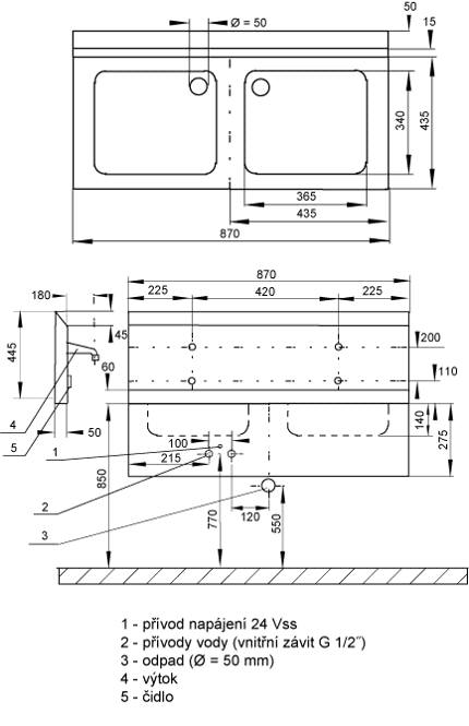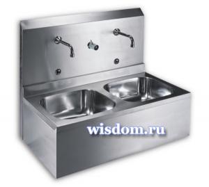 Двойная мойка из нержавейки с задней стенкой и с интегрированной электроникой предназначена для монтажа на стену