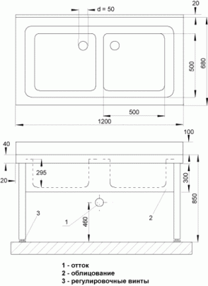 *Двойная большегрузная мойка из нержавеющей стали на ножках Большегрузная двойная мойка из нержавейки предназначена прежде всего для пищевой промышленности Возможность мелкого устройства плоскости с помощью регулировочных вентилев на ногах мойки Сифон является составной частью поставки Спецификация поставки: SLUN 16 - арт. № 93160 - большегрузная двойная мойка, сифон, (отверстие для смесителя может быть сделано по заказу!)