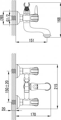 * В комплекте со смесителем для ванны: лейка, крепление, шланг 1,5 м