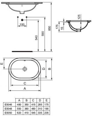 Раковина встраиваемая 55 см Ideal Standard Connect E504801 под столешницу