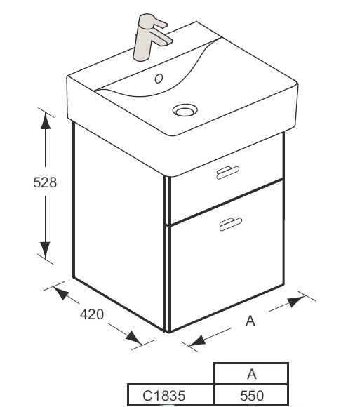 * Модель совместима с раковиной Connect Cube E784401 (55 см)