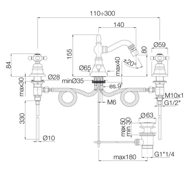 - с 2 гибкими шлангами 350 мм