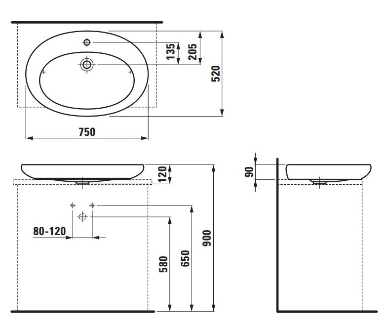 Раковина полувстраиваемая 75 см Laufen Alessi 1897.2