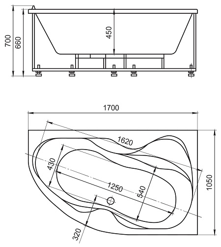 170 × 70 × 105 см.