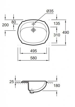 Раковина встраиваемая 58 см Jacob Delafon Portrait E1230-00