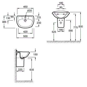 Рукомойник 50 см Jacob Delafon Portrait E1233-00