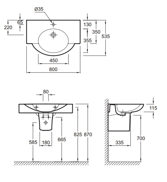 Полувстраиваемая раковина 80 см Jacob Delafon Presquile E1343-00