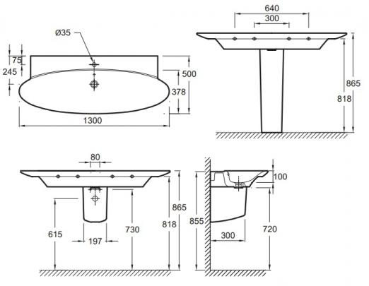 Подвесная раковина-столешница 130 см Jacob Delafon Presquile E4435-00