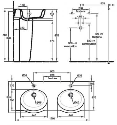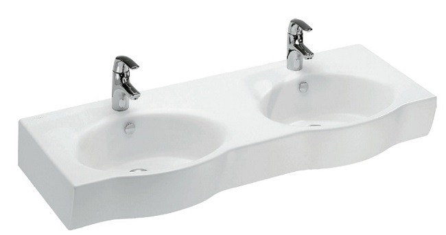 арт. E1704-00 - Раковина-столешница двойная Jacob Delafon Ove *Большое пространство для размещения предметов ежедневного использования *Большая чаша с гладкой поверхностью *Классический дизайн *Два отверстия для смесителя *Цвет: белый