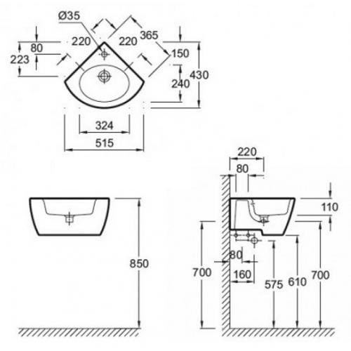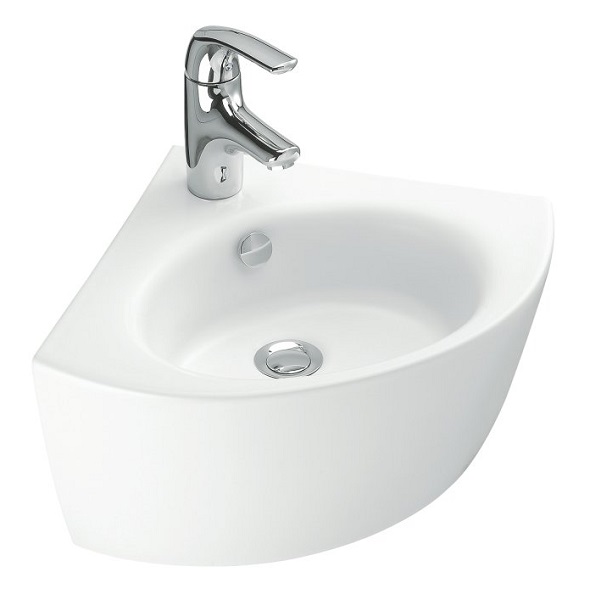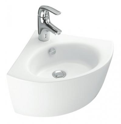 арт. E1566-00 - Раковина угловая Jacob Delafon Ove *С одним отвестием для смесителя *Классический дизайн, мягкие, плавные линии *С хромированной заглушкой для переливного отверстия *Материал: керамика *Вес: 13 кг *Цвет: белый