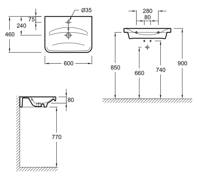 *Одно отверстие для смесителя