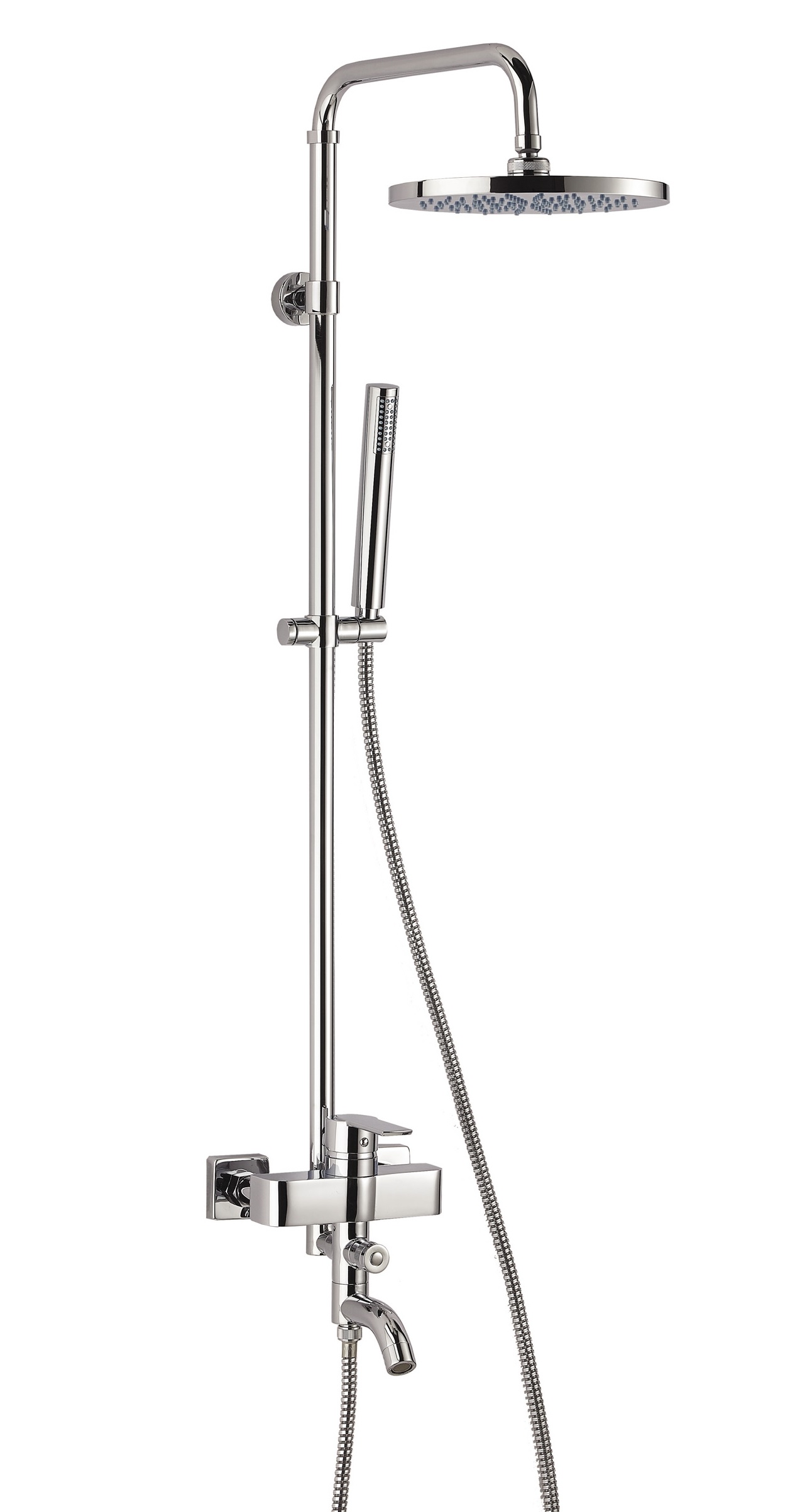 Коллекция Elle&Lui , душевой комплекс Rond *Артикул: 668700 000 00 *Верхний тропический душ D 250 мм (ABS) *Ручной душ с гибким шлангом 1.75 м *Механический монокомандный смеситель со встроеным изливом *Душевая штанга (латунь) регулируется по высоте *Пристенный вариант установки