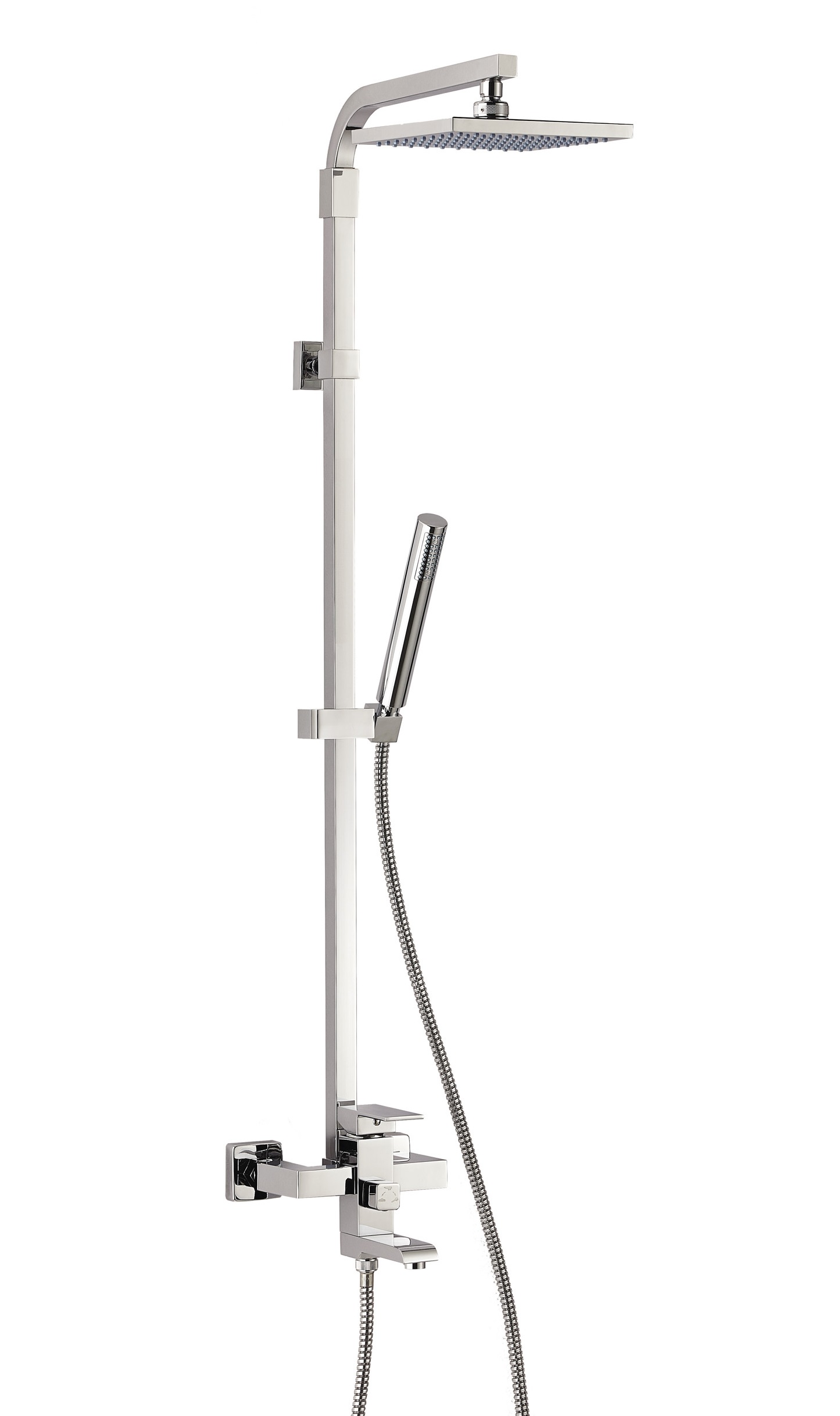 Коллекция Elle&Lui , душевой комплекс Carre *Артикул: 668600 000 00 *Верхний тропический душ D 200х200 мм (ABS) *Ручной душ с гибким шлангом 1.75 м *Механический монокомандный смеситель со встроеным изливом *Душевая штанга (латунь) регулируется по высоте *Пристенный вариант установки