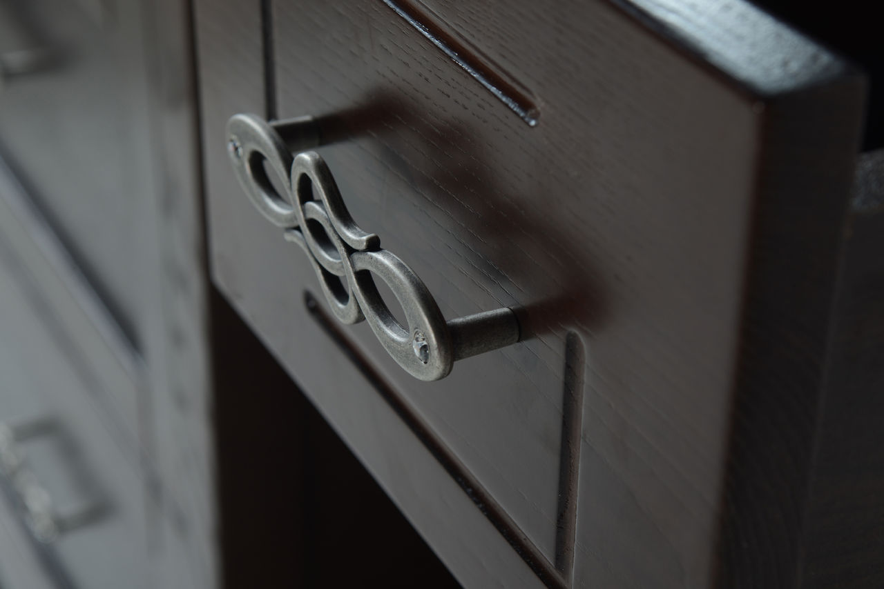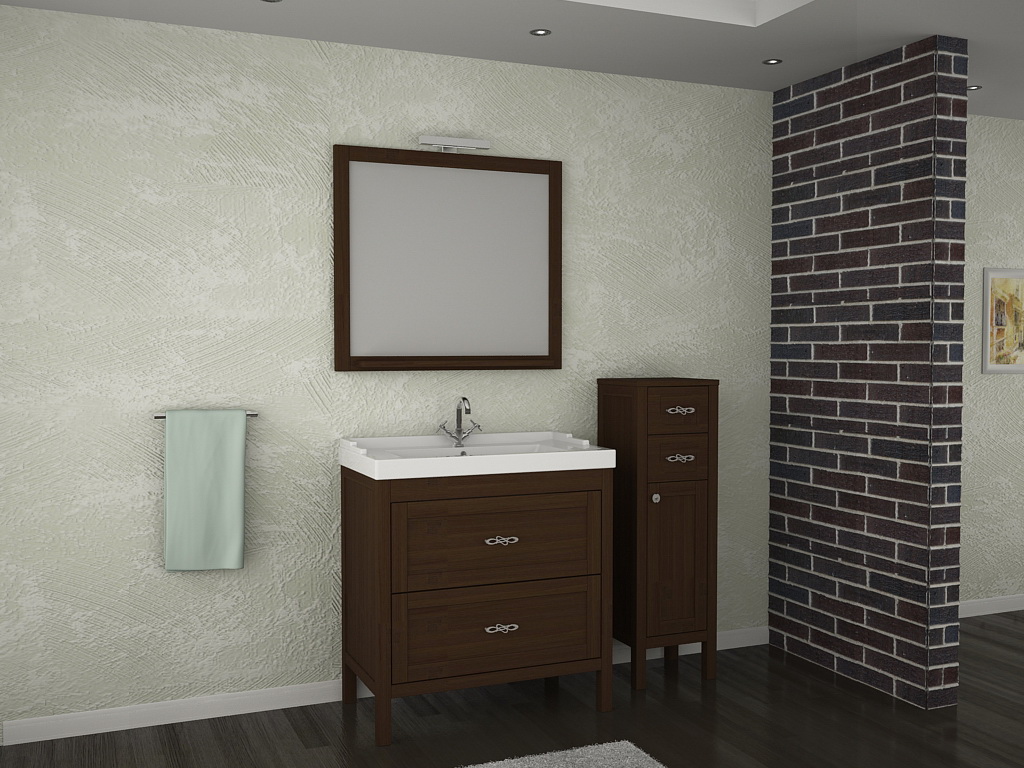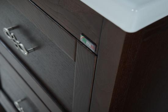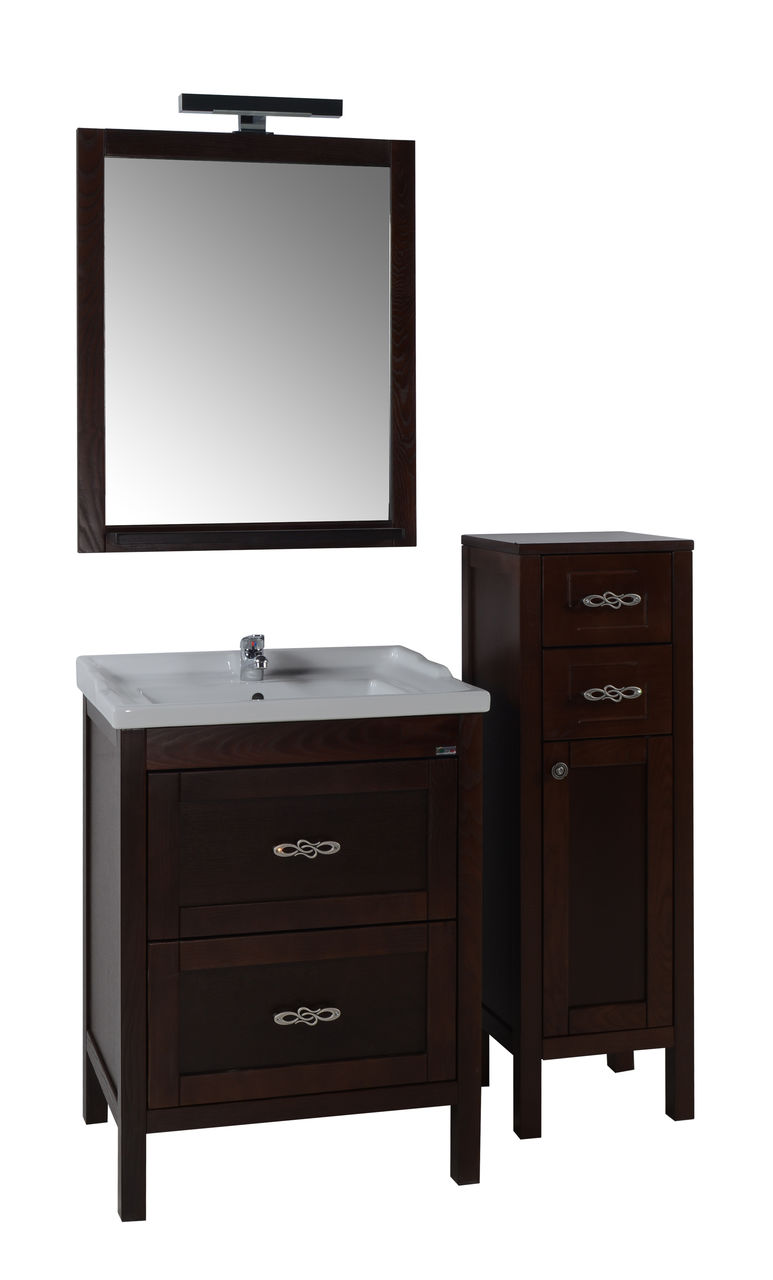 * Тумба оснащена двумя выдвижными ящиками * Зеркало комплектуется светильниками и полкой * В мебели используется фурнитура ведущих европейских производителей * Материал корпуса и фасада: массив ясеня * Покрытие фасада: патина, лак * Фурнитура: бронза * Цвет: бук тироль