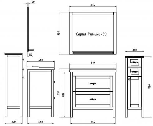 * Подстолье Римини-80 (794х448x804 мм) - 18480 руб. * Раковина Илиос 80 (810х460x41 мм) - 6300 руб. * Зеркало Римини-80 (834х110x750 мм) - 5240 руб.