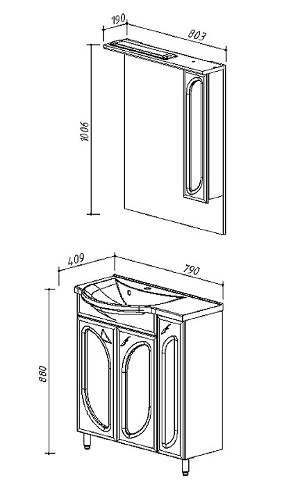| Зеркало Лира В80Ш | Белый | 803x190x1006 | 15112 |