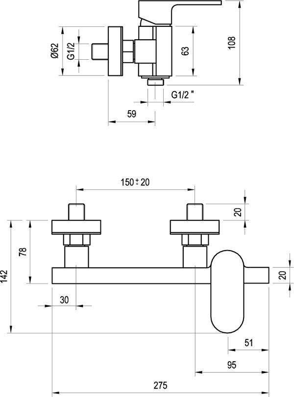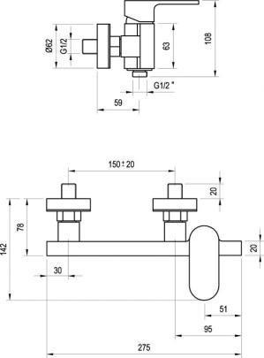 арт. X070043 - Настенный смеситель для душа CR 032.00/150