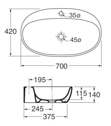 арт. CLR70 - Раковина Azzurra Clas 05 для установки на мебель