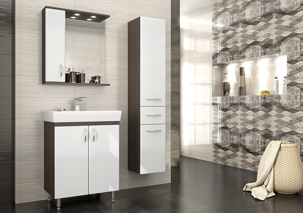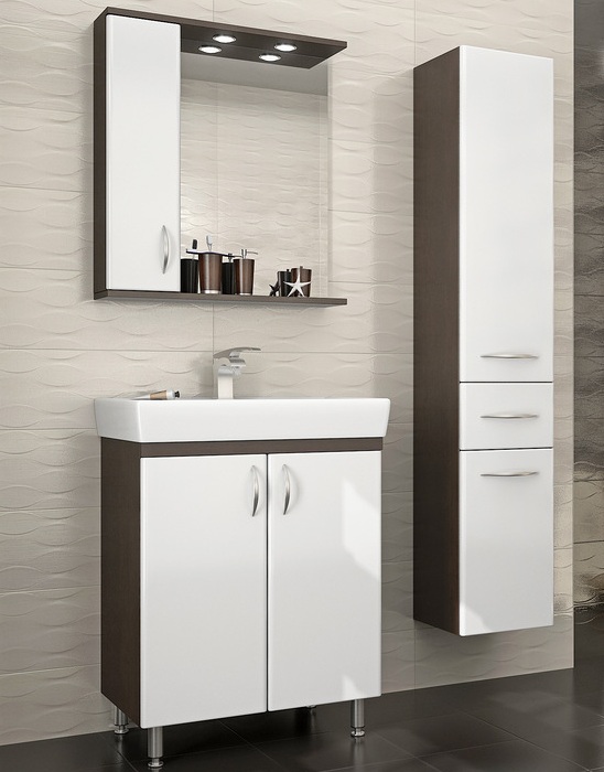 | pr 60z-2 L/R (корпус венге) | Зеркало Aqua Linea Prime со шкафчиком, двумя галогенными светильниками, розеткой, выключателем, корпус ДСП (венге), фасад МДФ (белый глянец), ориентация - левая/правая |