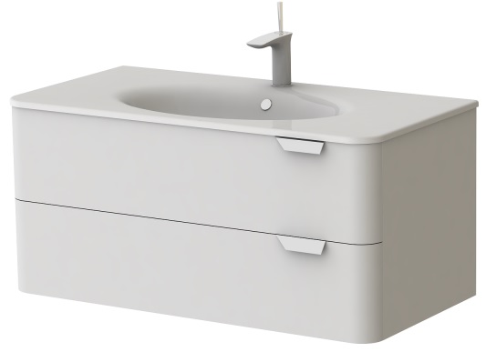* Тумба под умывальник щитовой конструкции содержит два выдвижных ящика с доводчиками