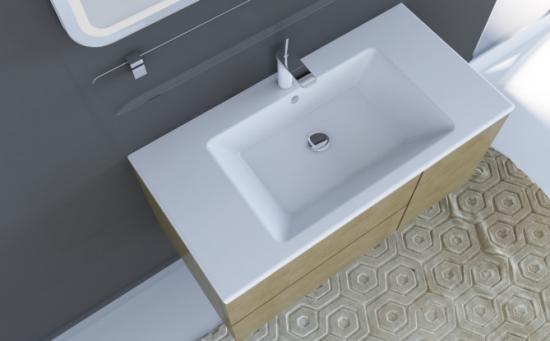 | Тумба Rimini Rm-80 с раковиной Marlen-80 Marmorin (искусств. камень), ясень |