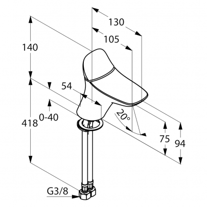 * арт. 530280575 - Смеситель для умывальника Kludi Ambienta, хром - однорычажный, литой рычаг - монтаж на одно отверстие - аэратор s-pointer Cache М 24х1 - керамический катридж - гибкий подвод воды G 3/8 - система быстрого монтажа - класс расхода воды Z - класс шума I