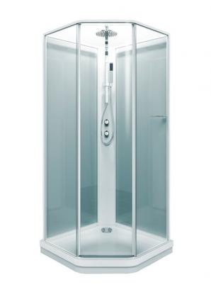 *габариты: 80х90х217/227 см *белый профиль, стекло прозрачное *дверка легко снимается для мытья *безопасное закаленное стекло 4 и 6 мм *надежность благодаря двум интегрированным алюминиевым профилям *встроенная ручка *фильтр-сито для сбора волос *смеситель-термостат с антискользящими ручками *ручной душ, регулируемый по высоте *верхний душ "тропический дождь" *поддон из литого мрамора с ножками и колесиками *угловая панель под смеситель *стеклянная полочка *комплект для подключения к канализации *минимум стыков, гладкие поверхности для простоты уборки