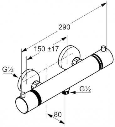 *арт. 352000538 - Смеситель для душа Kludi Objekta - двухвентильный - настенный монтаж - рукоятка выбора температуры воды с ограничителем горячей воды при 38`С - 50% ограничение подачи воды - запорный вентиль - отвод для душа G 1/2 - очистные фильтры - защита от обратного тока воды - класс расхода воды B