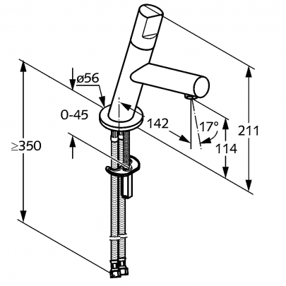 * арт. 570290575 - Смеситель для умывальника Kludi New Waves - однорычажный, цилиндровый рычаг - монтаж на одно отверстие - аэратор s-pointer М 24х1 - керамический катридж - гибкий подвод воды G 3/8 - система быстрого монтажа - класс расхода воды Z - класс шума I