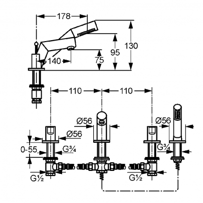 * арт. 574240530 - Смеситель для ванны и душа Kludi New Waves