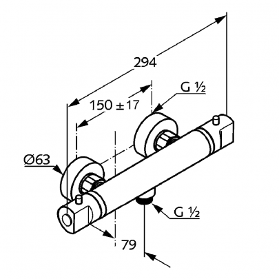 *арт. 574200530 - Смеситель для душа Kludi New Waves - двухвентильные, цилиндровые рукоятки - настенный монтаж - рукоятка выбора температуры воды с ограничителем горячей воды при 38`С - 50% ограничение расхода воды - отвод для душа G 1/2 - защита от обратного тока воды - очистные фильтры - эксцентрики - класс расхода воды B - класс шума I