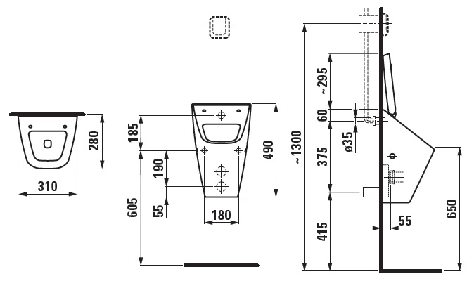 Писсуар со скрытым подводом воды Laufen Vila 4114.1