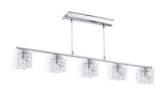 Подвесной светильник Eglo Pianella 91734 Размеры: L 920, B 110, H 1100 Цоколь: G9 Источник света: G9-ECO Мощность лампы: 5x 33W Световой поток: 5x 450 лм Средний срок службы: 2 000 ч Материал: сталь/стекло Цвет: хром/прозрачный Уровень защиты: IP20 Лампы включены в комплект. Минимальная сумма заказа — 10 000 руб.