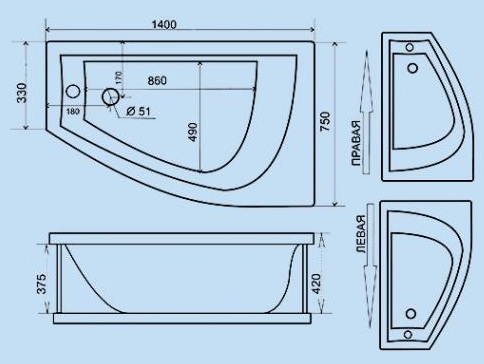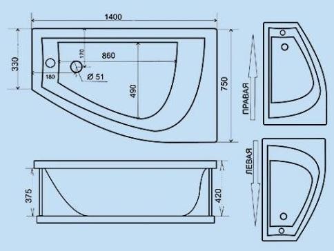 - Ванна Triton Бэлла 140 (L/R)