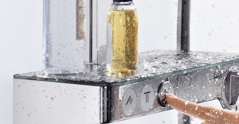 * верхний душ Raindance Select E 300 3jet * размер душевого диска: 300 x 190 мм * тип струи: RainAir (дождевая струя, обогащенная воздухом), Rain, RainStream * удобное переключение типов струи с помощью кнопки Select * расход воды для струи RainAir (при 3 бар): 16 л/мин * расход воды для струи Rain (при 3 бар): 16 л/мин * расход воды для струи RainStream (при 3 бар): 19 л/мин * поверхность душевого диска в двух вариантах: хром * длина держателя для душа: 380 мм * термостат ShowerTablet 300 * с широкой полочкой * цвет поверхности полочки: хром * предохранительный ограничитель при 40°C * регулируемый ограничитель температуры горячей воды * пользовательское управление посредством кнопки Select * вид монтажа: наружный монтаж