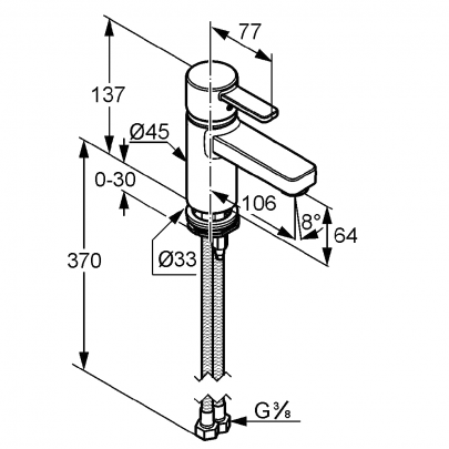 *арт. 382519175 - Смеситель для умывальника Zenta - однорычажный, литой рычаг - монтаж на одно отверстие - аэратор s-pointer Eco M 24x1 - керамический картридж с ограничителем горячей воды - гибкий подвод воды G 3/8 - система быстрого монтажа - класс расхода воды Z - класс шума I