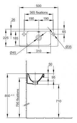 Рукомойник 50 см Jacob Delafon Odeon Up E4701L-00